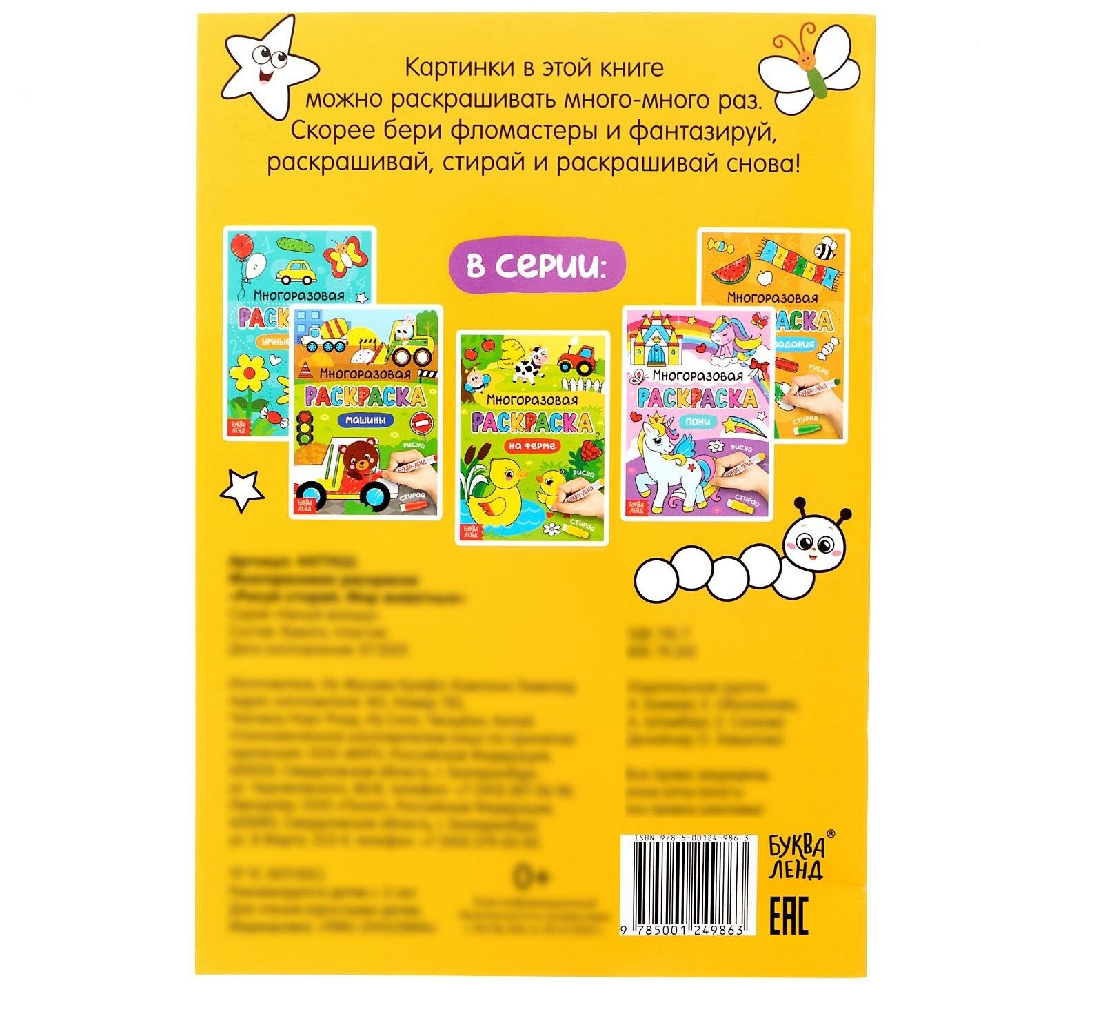 Многоразовая раскраска Мир животных с маркерами; Буква-ленд, 2020