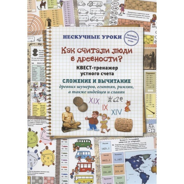 Перед вами тетрадь-тренажер математических квестов. Вам предлагается совершить путешествие в прошлое, попав в Древний Шумер, Египет, Рим и Русь, и познакомиться с особенностями нумерации и счета каждой страны, а потом прогуляться по рынку и приобрести всевозможные товары. Скучно не будет!