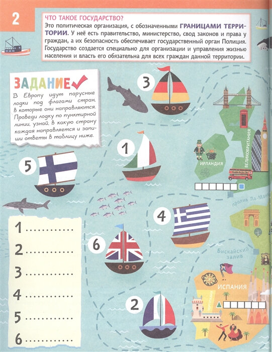 Атлас очень яркий, как и заявлено, он делает основной акцент на флаги разных стран, при этом мы видим эти страны на карте и закрепляем знания с помощью заданий и карты постера с наклейками. В сам атлас наклейки не клеятся, там много других заданий, потому, видимо, бумага не мелованная. В общем для детей 7-10 лет будет очень интересно и информативно