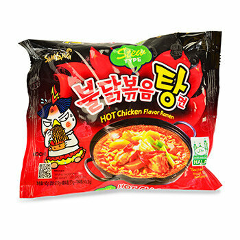 Тушеная курица по-корейски это море вкуса и удовольствия: яркая, пряная, острая! Если вам нравятся насыщенные вкусы рамен, обязательно попробуйте новинку бренда Samyang восхитительную лапшу быстрого приготовления Hot Chicken. Красная упаковка подтверждает: внутри много перца, поэтому будет остро и горячо всё, как вы любите! А неповторимый азиатский колорит блюду придают сушеные овощи, водоросли и жареный кунжут.