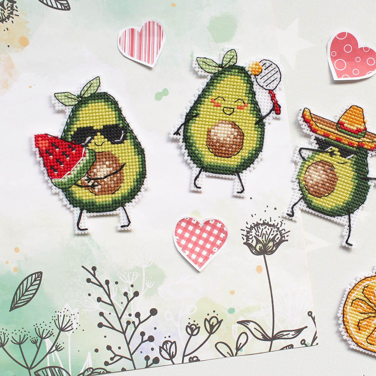 Сделайте своими руками яркие сувениры 'Авокадо' – это увлекательно и быстро. Набор подойдет даже начинающим, достаточно проявить терпение, аккуратность и освоить простую технику 'крест'. Пяльцы или рамки не понадобятся – пластиковая канва отлично держит форму. Готовые элементы надо вырезать по контуру и соединить между собой аккуратными стежками. При желании вклейте между деталями ленту-подвес.Украсьте этими сувенирами дверцу холодильника, меловую доску или преподнесите их как подарок.В наборе: канва пластиковая Aida 14, хлопковое мулине на органайзере, магнитное полотно, фетр, игла, схема, инструкция.Количество цветов: 15.Размер готового сувенира: 7х10 см.