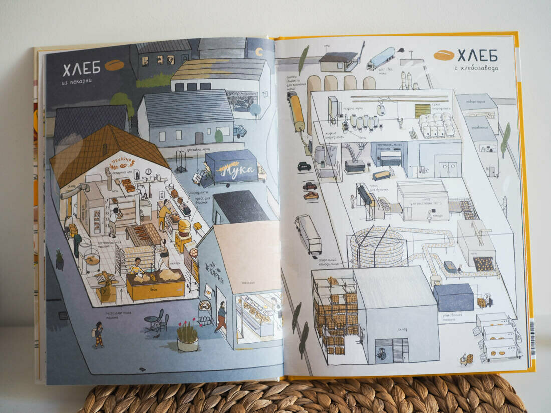 Книга Юлии Дюрр расскажет про долгий путь, который проходят продукты, прежде чем очутиться у нас на столе: о том, как нашу еду сеют, выращивают, собирают, пекут, сортируют, упаковывают и перевозят. Яркие и наглядные иллюстрации помогут понять, как работают крупные и малые предприятия пищевой промышленности, чем отличается фермерское молоко от фабричного и сколько требуется труда, чтобы мы смогли купить на прилавке помидор или яблоко. Прочитав книгу, вы по-новому посмотрите на содержимое вашей тарелки!