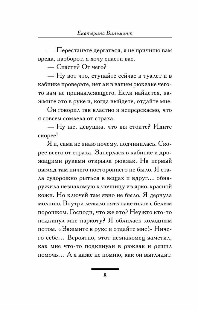 Книга легко читается сюжет очень интересный интрига сохраняется до конца сюжета.книги Екатерины Вильмонт Я всегда жду и читаю с наслаждением они очень жизненные с чувством юмора и капелькой грусти.Ее герои это люди из жизни со своими переживаниями и размышлениями,когда их читаешь очень хочешь узнать ещё больше о героях что с ними случиться в будущем.Книги когда начинаешь читать хочешь дочитать до конца ,а когда прочёл то очень хочется снова окунуться в мир героев книги и читать и читать.