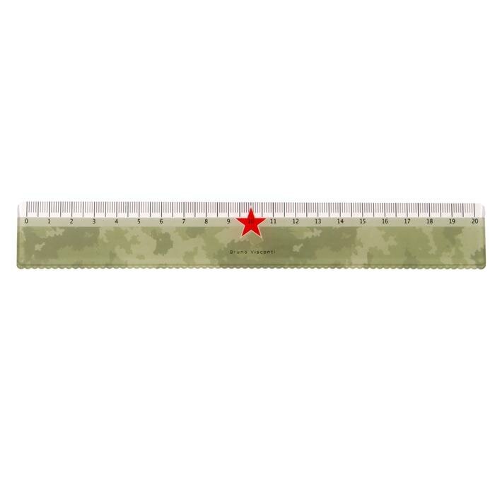 Пластиковая линейка с волнистым краем, длинной 20 см, из коллекции "Happy Graphix". Оформлена в стиле милитари: камуфляжный принт цвета хаки и красная звезда. Изготовлена из качественного нетоксичного пластика. По верхнему краю линейки расположена прозрачная шкала с разметкой и цифрами. Есть фаска, что поможет точно приложить линейку и чертить четкие линии. Риски шкалы нанесены тиснением и не сотрутся. Нижняя сторона линейки предназначена для черчения волнистых линий. В стандартной упаковке 24 шт. в индивидуальных пакетах с европодвесом.