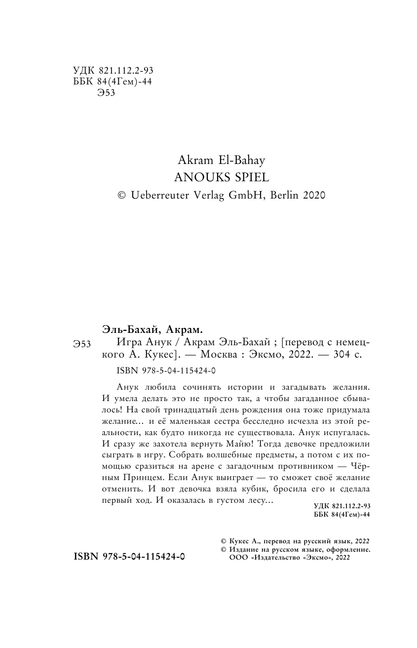 Игра Анук (Эль-Бахай Акрам); ООО "Издательство "Эксмо", 2022
