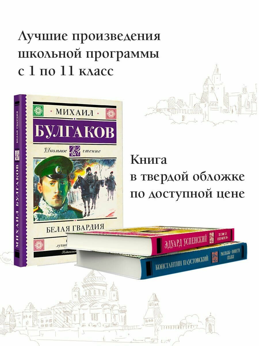 Спасибо издательству АСТ! Под одной обложкой опубликованы две замечательнейшие, любимейшие вещи, принадлежащие перу Михаила Булгакова: «Белая гвардия» и «Собачье сердце». А какой рисунок на обложке! Издание, судя по рубрике-серии адресовано школьникам («Школьное чтение»), но, конечно же, это книги для любых возрастов. Их читали, читают, будут читать и перечитывать миллионы людей. Это вершины литературы. Книга напечатана качественно, приятным удобочитаемым шрифтом. Цена очень демократичная. Горячо рекомендую всем ее приобрести.