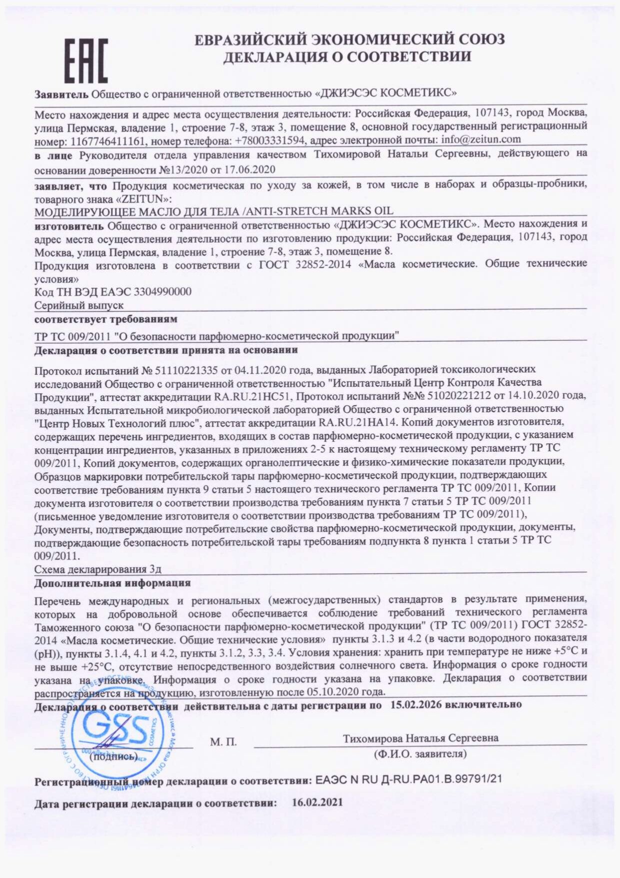 | Полное наименование | Масло против растяжек Zeitun 150 мл |