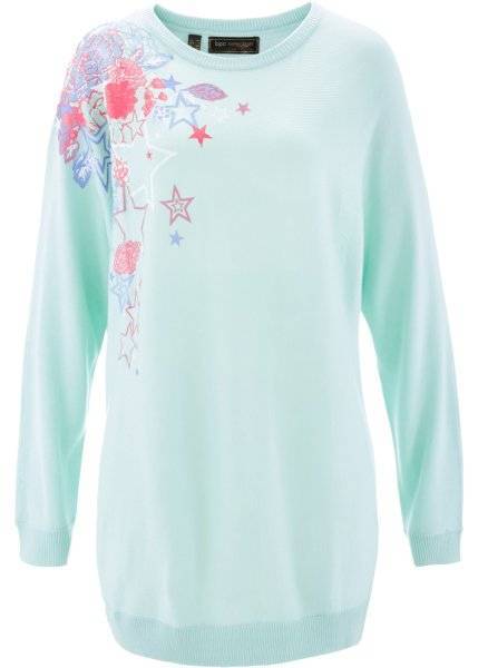 Пуловер с рукавом летучая мышь (пастельная мята/разноцветный с рисунком) bonprix для женщин