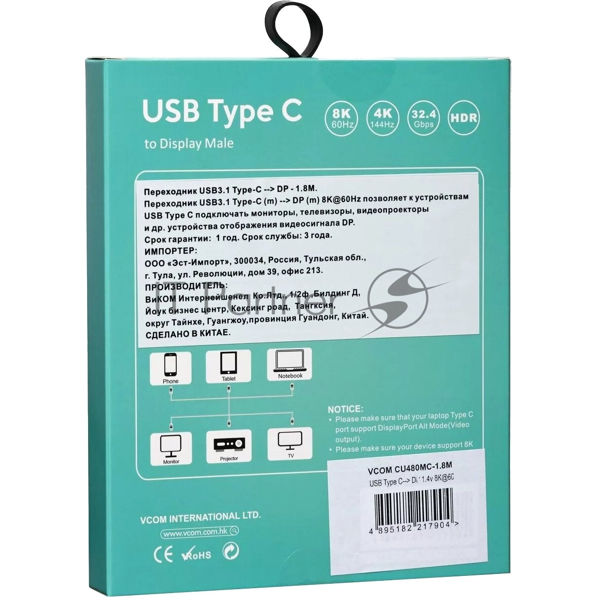 | Прочие особенности | Разъём 1 USB Type-C (M), Разъём 2 DisplayPort (M), Версия DisplayPort 1.4, Позолоченные разъёмы да |