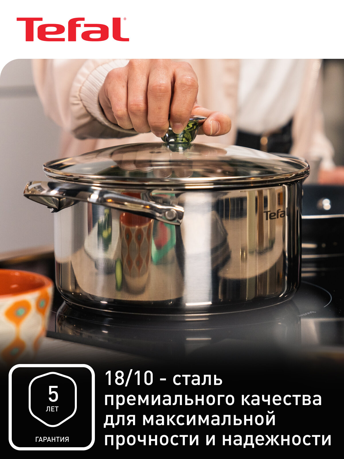 Готовить дома – легко! Посуда Tefal Cook Eat создана, чтобы помогать готовить вкусные домашние блюда легко и без стресса и каждый раз получать превосходные результаты. Кастрюля с крышкой выполнена из прочной нержавеющей стали и показывает высокое качество и долгий срок службы, облегчая ежедневное приготовление еды: положите свежие ингредиенты и позвольте посуде приготовить что-нибудь вкусное на обычный ужин или праздничный банкет.