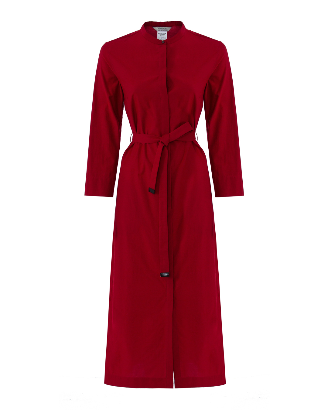 Платье Max Mara из новой весенне-летней коллекции 2022 выполнено из хлопка насыщенного красного оттенка. Модель прямого силуэта с застежкой на пуговицы и планку. Изделие дополнено двумя карманами и поясом из основного материала.