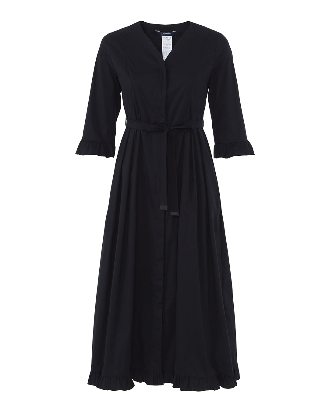Платье Max Mara из новой весенне-летней коллекции 2022 сшили из хлопка. Модель приталенного силуэта с поясом.