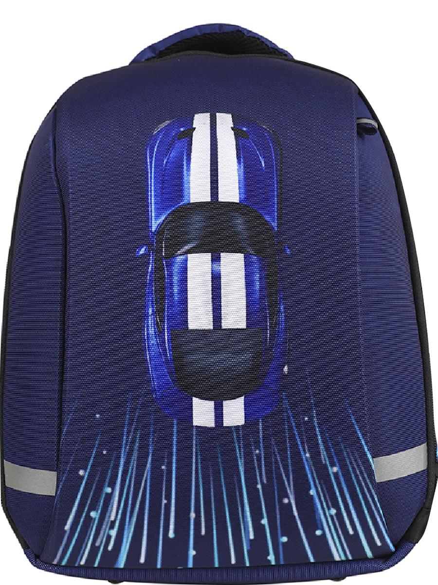 Формованный ученический рюкзак для младшего школьного возраста предназначен для переноски личных вещей и школьных принадлежностей. Верх изделия выполнен из прочного водоотталкивающего материала с покрытием ПУ, держит форму посредством цельноформованных деталей. Отдельные элементы оформлены оригинальным принтом. Внутренняя поверхность изготовлена из цветной подкладочной ткани, соответствующей дизайну. Модель - жестко каркасная. В модели предусмотрены: - основной отдел, в котором есть подвижная перегородка, разделяющая отдел, - малый узкий отдел, - формованная передняя стенка, - на боковых поверхностях располагаются карманы небольшого размера для бутылки, или иных предметов требующих быстрого доступа, - спинка жесткая с мягкими вкладышами, - заплечные ручки плотные, формованные, с массажной поверхностью, оптимально широкие, с нагрудной стяжкой, регулируются по осанке, - дно плотное, усиленное с помощью специальных материалов, с пластиковыми пуклями, - застежка молния с оригинальными цветными слайдерами, соответствующими дизайну, - фурнитура пластиковая, цветная. Светоотражающие элементы, расположенные на передней стенке, боковых поверхностях и заплечных ручках обеспечат безопасность школьника на проезжей части в сумерках.