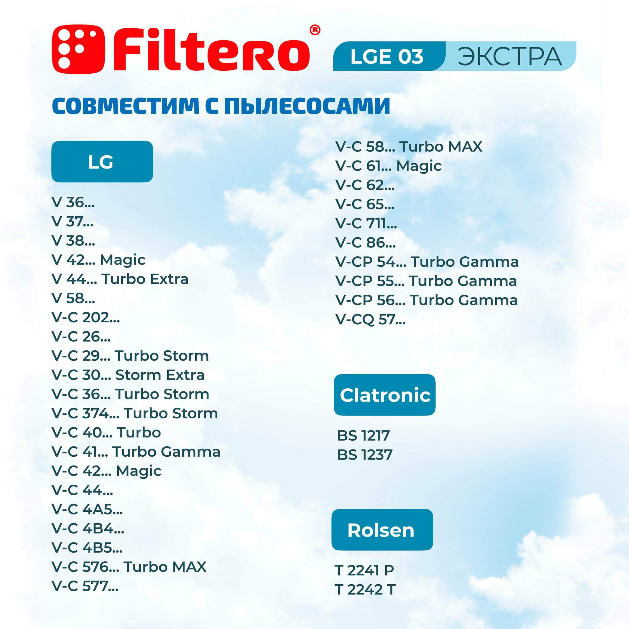 Пылесборники FILTERO LGE 03 Экстра, пятислойные, 4 шт., для пылесосов LG, CLATRONIC, ROLSEN LGE 03 (4) ЭКСТРА