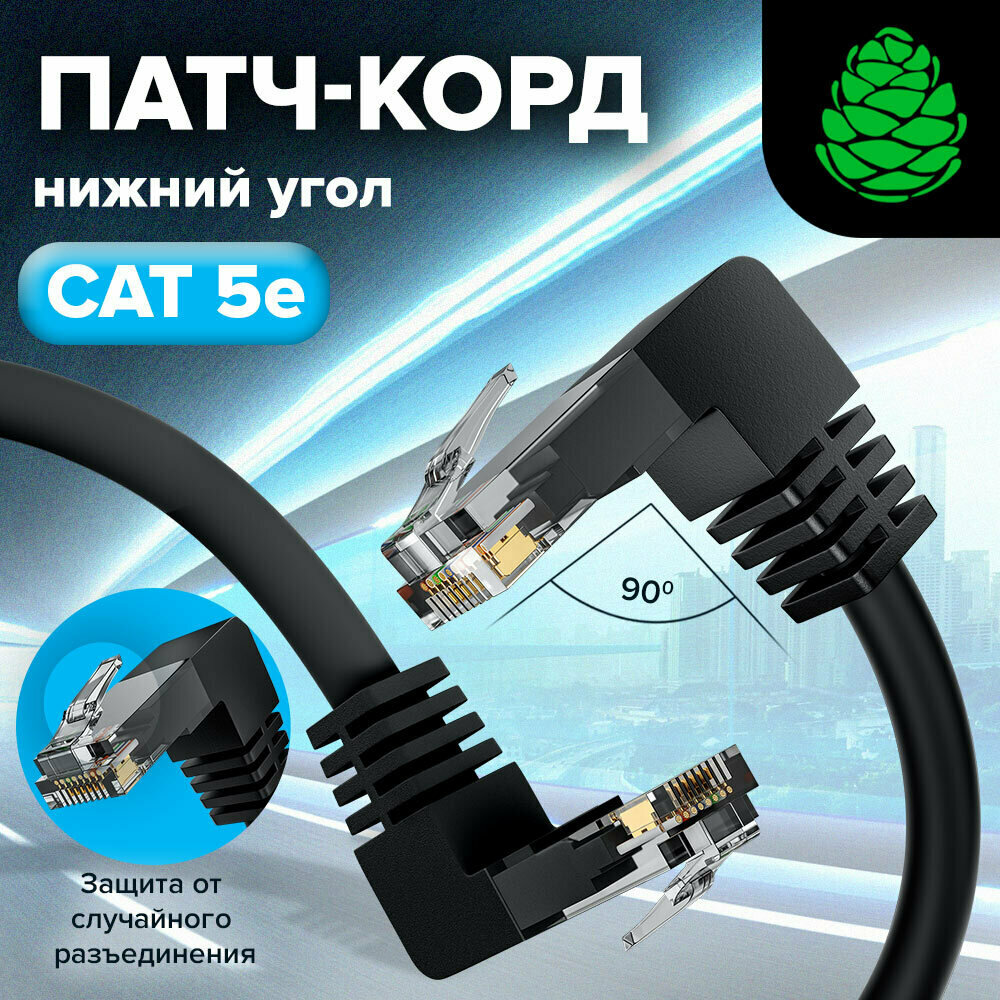 Кабель популярной категории 5е обеспечит вас высокоскоростным интернетом 1000 Мбит/с (1 Гбит/с). С такой скоростью любимые фильмы будут загружаться меньше чем за полминуты, а музыка - мгновенно. Благодаря угловой форме коннекторов размещайте кабель максимально комфортно и без изгибов даже в ограниченных или труднодоступных пространствах.