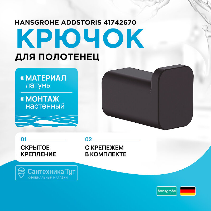 Крючок Hansgrohe AddStoris очень удобен для повседневного использования. Надежная фиксация, скрытое крепление не оставляет следов на стене. Простое оформление заказа. Быстрая доставка, удобно и надежно. Доволен!