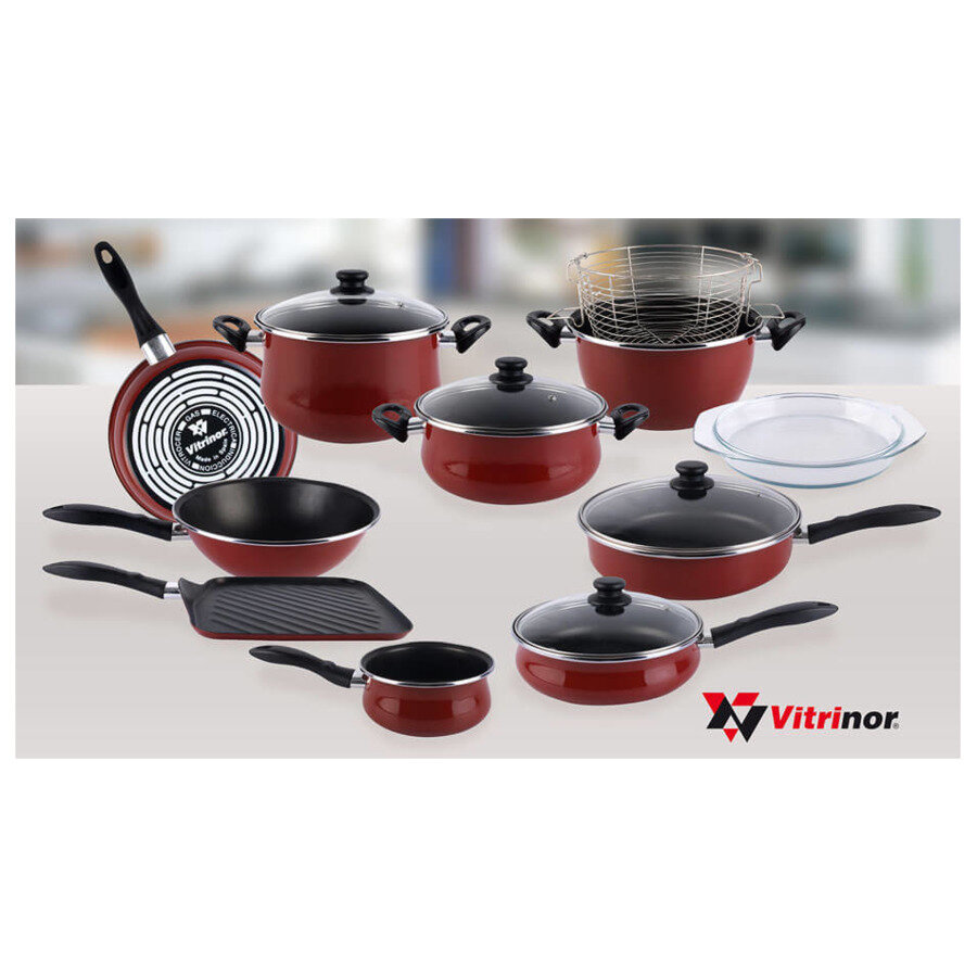 - Внешнее покрытие из двухслойной стеклоэмали, обожженной при температуре 820ºC, обеспечивает простой уход за сковородой, а яркие цвета посуды Vitrinor украсят интерьер любой кухни.