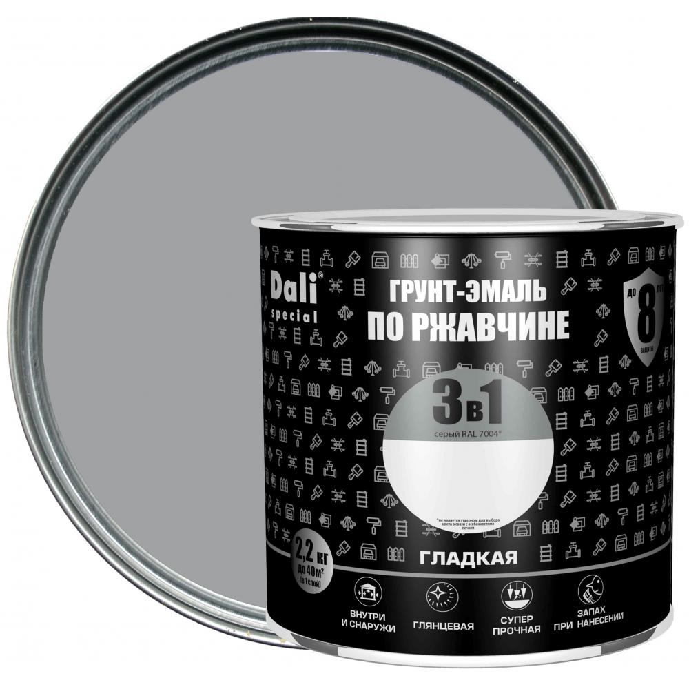 Эмаль по ржавчине 3 в 1 Dali гладкая цвет серый 2.2 кг