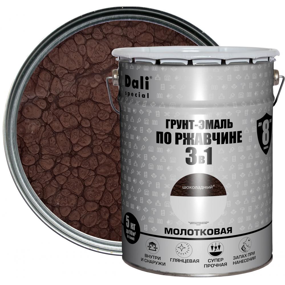Грунт-эмаль по ржавчине 3 в 1 DaliМолотковая цвет шоколадный 5 кг