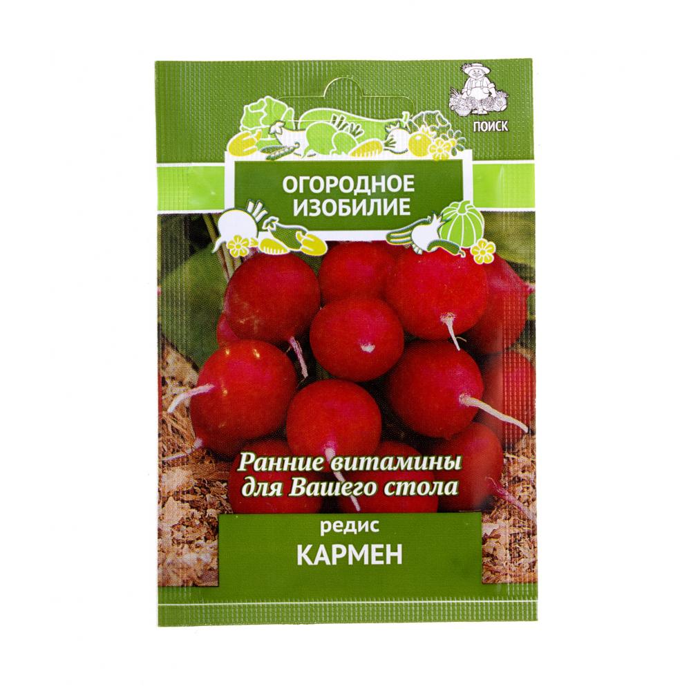 Редис «Кармен» — ранний сорт, достигающий технической спелости за 3-4 недели. Корнеплоды имеют красивую округлую форму, что в сочетании с ярко-красной окраской придает им эффектный товарный вид. Сочная светлая мякоть не содержит лишней остроты и горечи. Редис можно добавлять в салаты, супы и другие блюда.
