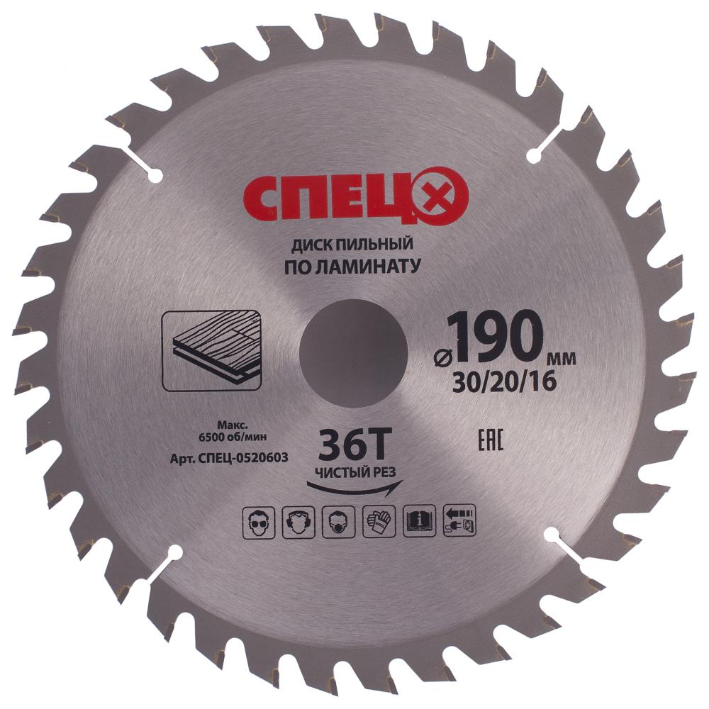 Диск пильный по ламинату 190x30/20/16 мм Спец 0520603, 36 Т 190мм*36зуб*30/20/16мм,по ламинату (СПЕЦ-0520603)