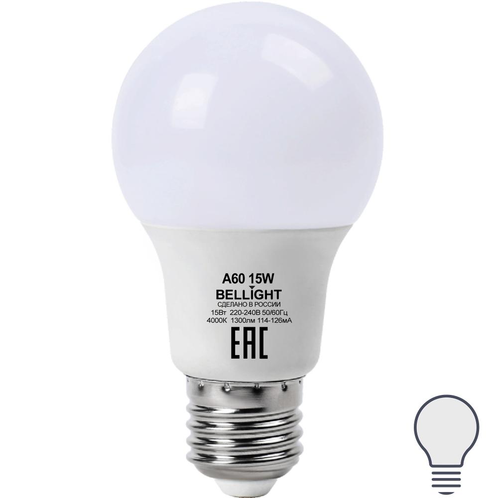 Лампа светодиодная E27 220 В 15 Вт груша матовая 1300 лм, холодный белый свет Bellight