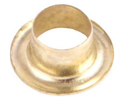 **Заклёпка-люверс** улучшает эстетическое восприятие отверстий в коже, тканях и других материалах. Изделие прочно удерживает края и не позволяет им расходиться со временем. Глянцевый декоративный элемент выполнен из алюминия в желто-золотой цветовой палитре.