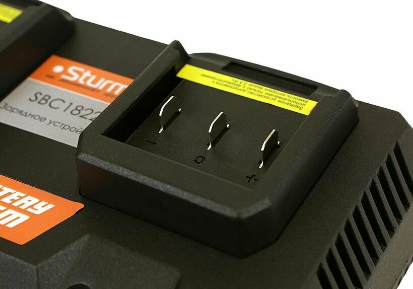 Зарядное устройство для Sturm! предназначено для использования со всеми аккумуляторами с напряжением 18В слайдерного типа. Зарядное устройство обеспечивает быструю и безопасную зарядку аккумулятора. Для контроля процесса зарядки предусмотрена светодиодная индикация.