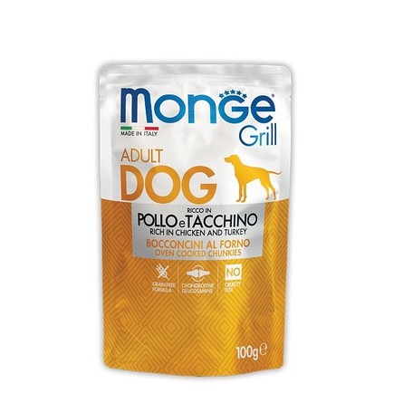 Monge Dog Grill Паучи для взрослых собак, с курицей и индейкой, 100 г