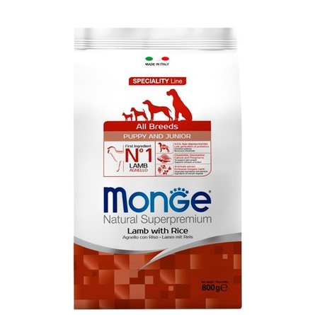 Monge Dog Speciality Line Puppy & Junior Сухой корм для щенков всех пород, с ягненком и рисом, 800 г