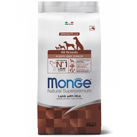 Monge Dog Speciality Line Puppy & Junior Lamb Сухой корм для щенков всех пород, с ягненком, рисом и картофелем, 2,5 кг