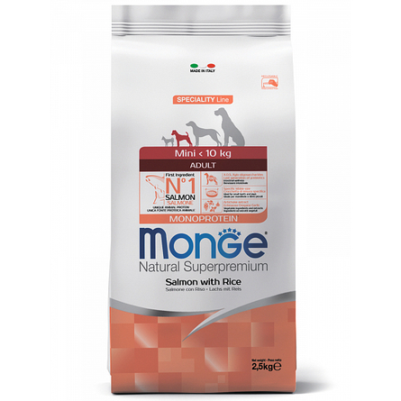 Monge Dog Speciality Line Mini Adult Сухой корм для взрослых собак мелких пород, с лососем и рисом, 2,5 кг