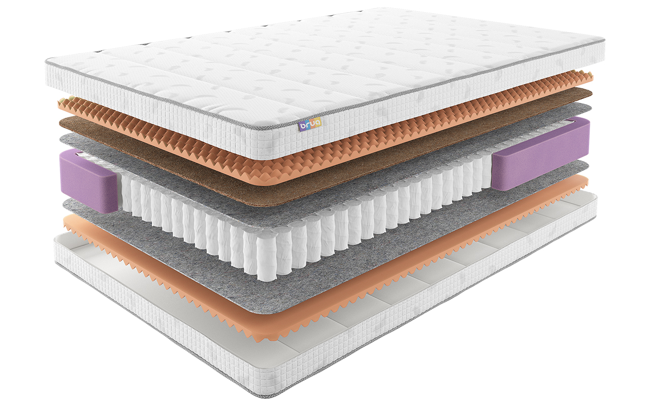 Наличие натурального латексированного кокосового полотна 1 см в составе придает матрасу жесткость, обеспечивает дополнительную поддержку позвоночника во время сна, формирует ортопедический эффект.