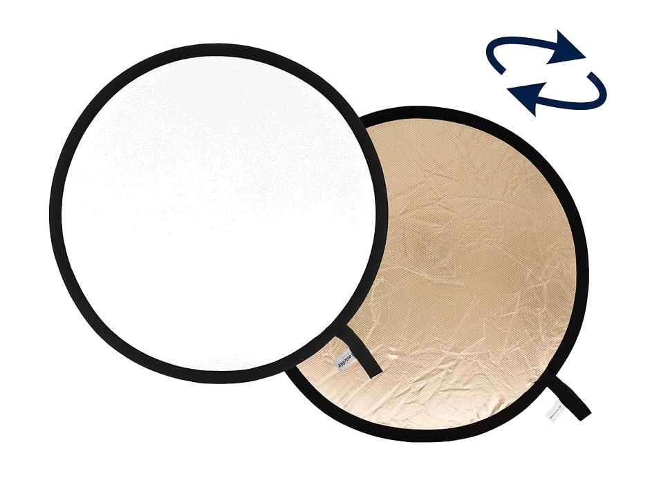 Складной и двухсторонний. Комплектован переносной сумкой. Складывается втрое от первоначального размера. Отражающая поверхность с двойным покрытием. Гарантия долговечности обода