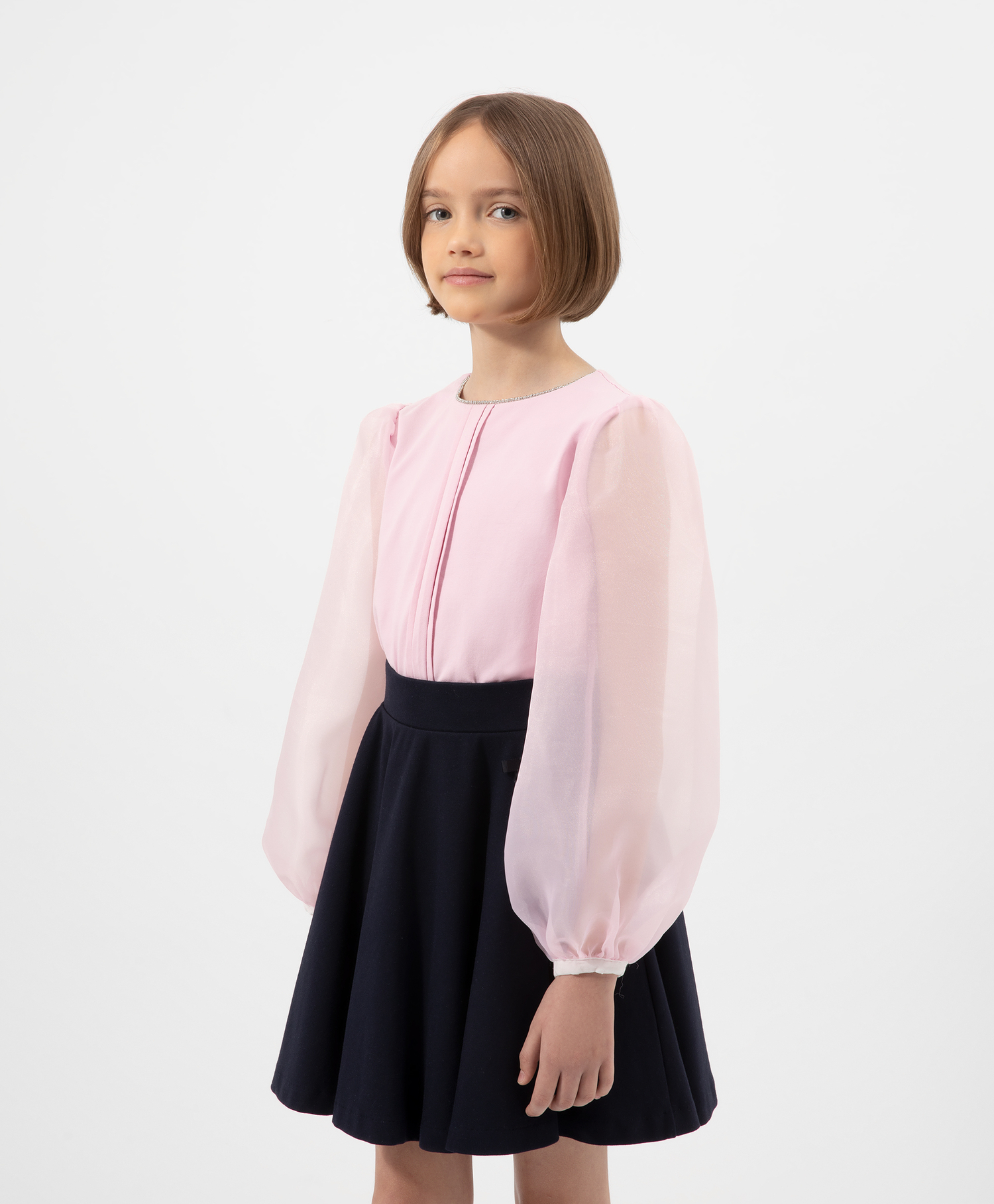 Блузка комбинированная с объемными рукавами розовая Gulliver 222GSGMC1204 детям (размер: 122)