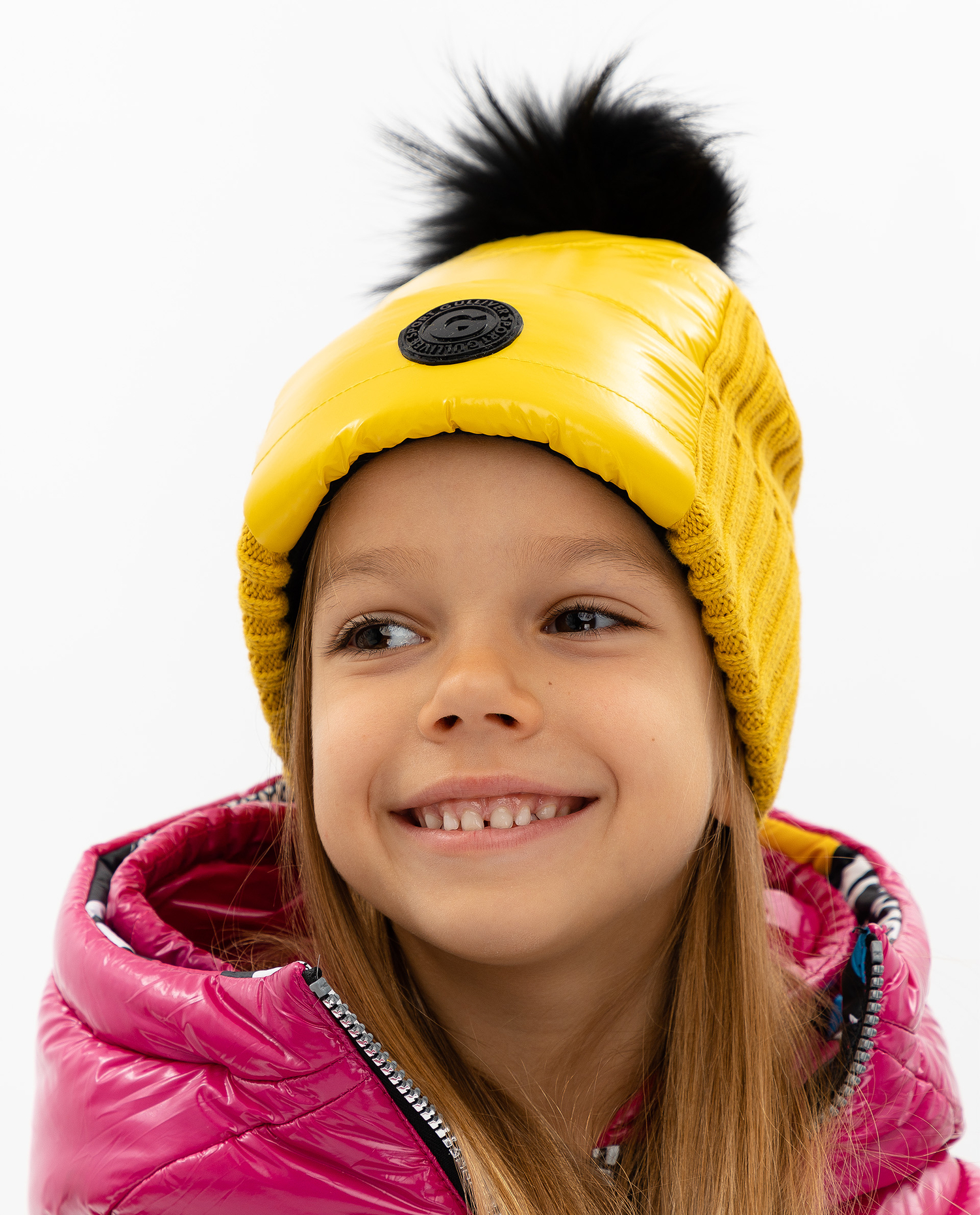Лучшее дополнение к зимней экипировке - яркая вязаная шапка с помпоном из натурального меха. Изюминка модели - сочетание двух фактур! Стеганая плащевая деталь на передней части модели в комбинации с вязаной текстурой создают выразительный контраст, подчеркивающий динамичность дизайнерского решения. Двойная шапка с отворотом - теплый и комфортный элемент для длительных прогулок и активного отдыха. Прекрасный состав пряжи делает шапку мягкой, приятной на ощупь, а также исключает колкость изделия. Маленький контрастный шеврон придает модели завершенность.