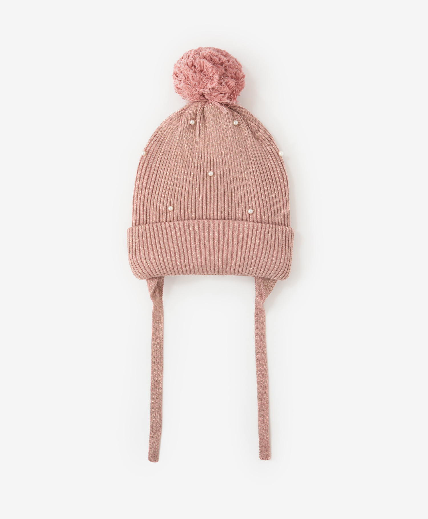 Вязаная шапка - прекрасное дополнение образа в холодную погоду. Шапку украшает крупный помпон и бусины. Хлопковая подкладка создает мягкость и комфорт при взаимодействии с кожей ребенка. Завязки представлены у модели только в 50 размере.