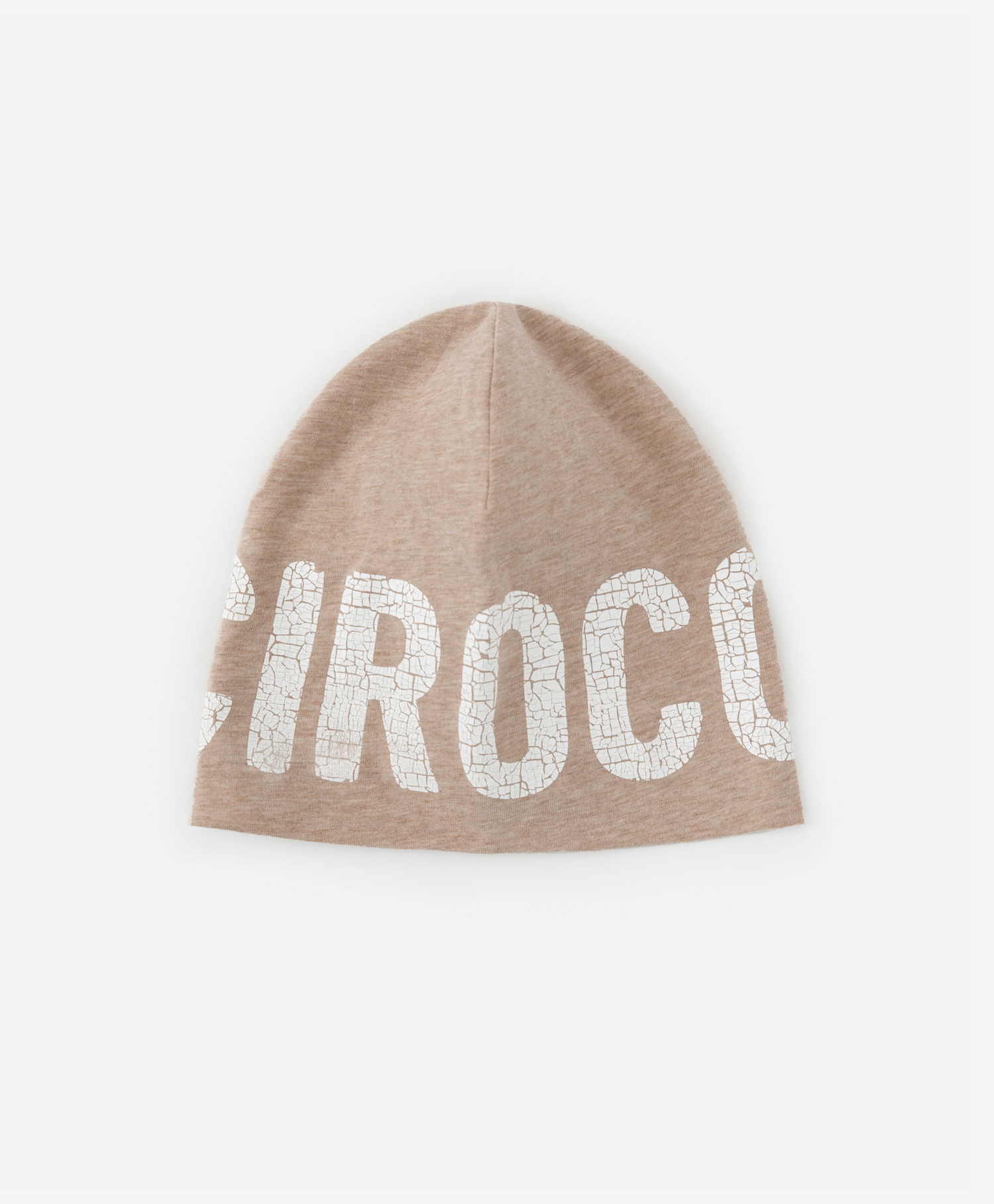 Двойная шапка из меланжевого трикотажа - отличное завершение весеннего образа. В оформлении шапки использован крупный шрифтовой принт с винтажным эффектом.