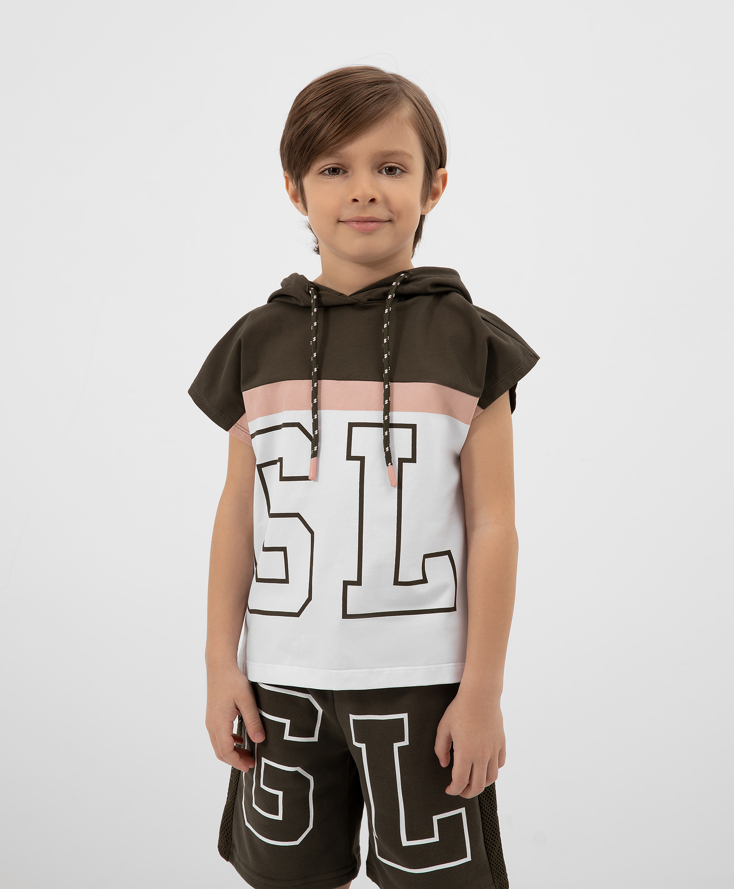 Майка с капюшоном и спущенным плечом хаки Gulliver 12206BMC5702 (размер: 104)