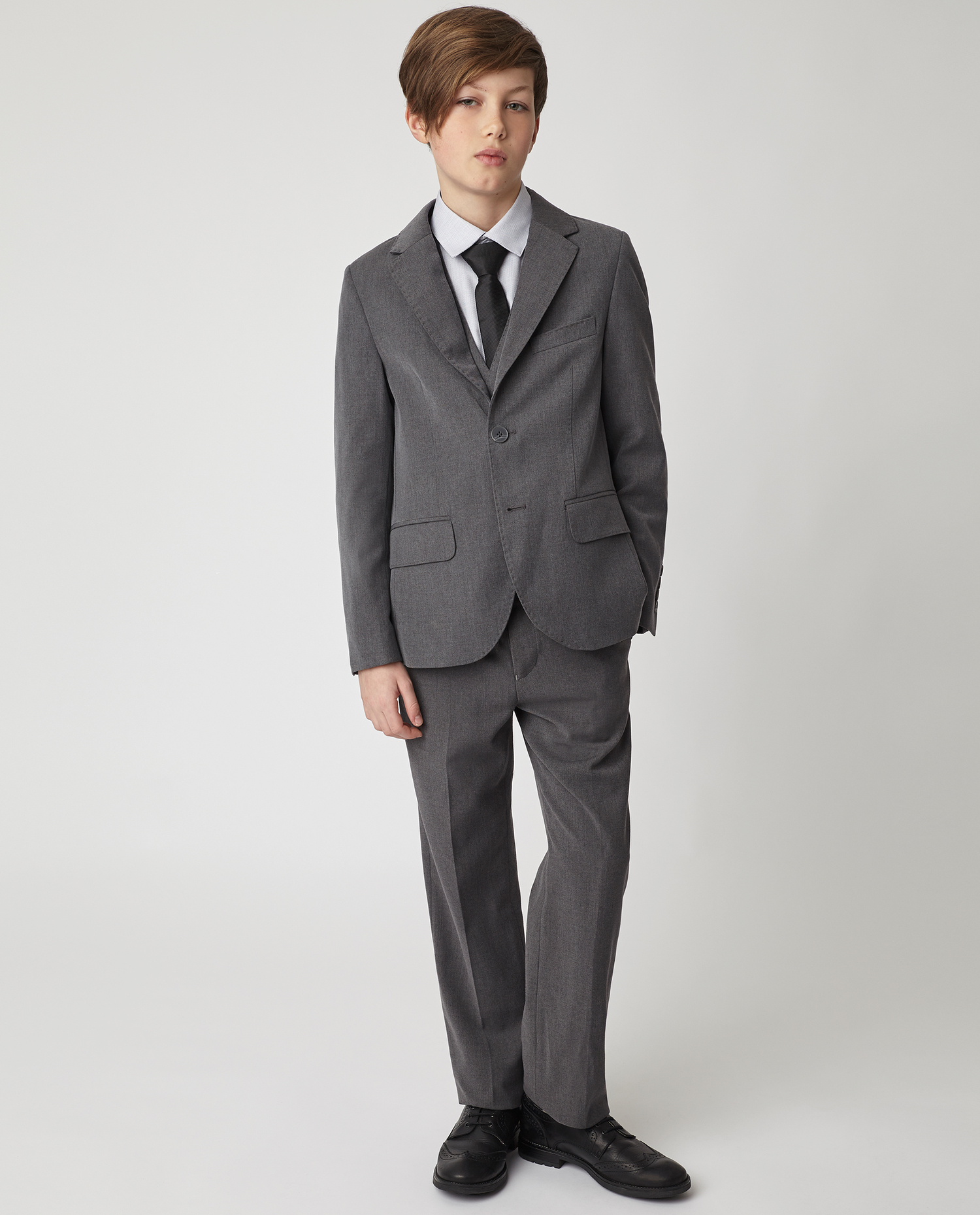 Элегантный серый пиджак - непременный атрибут школьного гардероба! Он подчеркнет деловой имидж ученика, сформировав стильный и завершенный образ. Идеальная посадка, качественная износостойкая ткань делают пиджак достойным приобретением. И для торжественной линейки, и для других важных школьных мероприятий, синий пиджак с двумя шлицами сзади будет незаменим. Вместе с брюками 220GSBC6303 и жилетом , пиджак составит превосходную тройку. Также, он будет выглядеть очень достойно в комплекте с брюками и жилетом из твида.