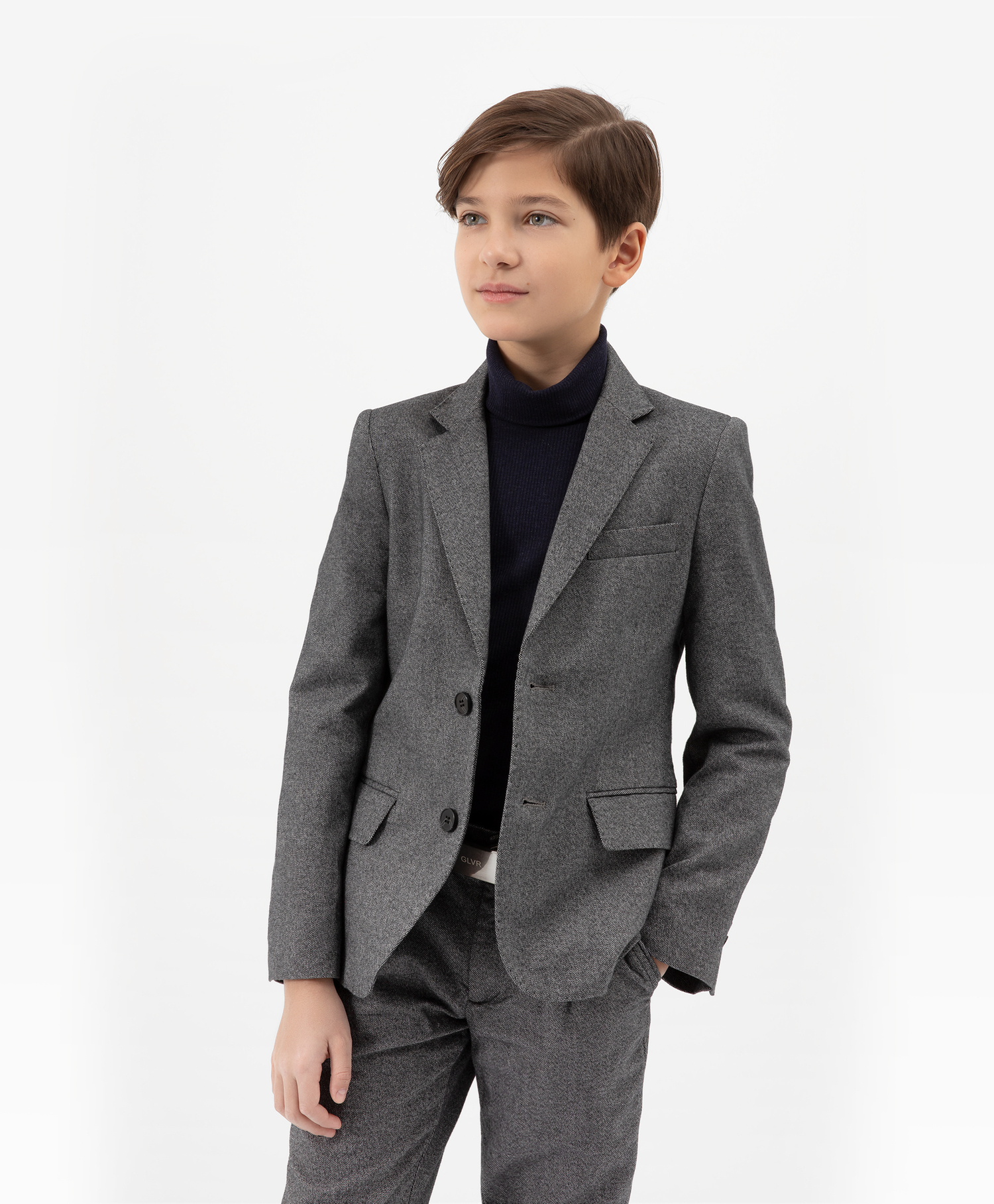 Элегантный серый пиджак из модного твида - отличная альтернатива однотонной классике! Он подчеркнет деловой имидж ученика, сформировав стильный и завершенный образ. Идеальная посадка, благородная качественная износостойкая ткань с 100%ым хлопком в составе, красивая внутренняя обработка деталей кроя делают пиджак достойным приобретением. И для торжественной линейки, и для других важных школьных мероприятий (и не только), твидовый пиджак с двумя шлицами сзади будет незаменим. При желании можно сформировать костюм-тройку, дополнив пиджак твидовым жилетом и брюками.