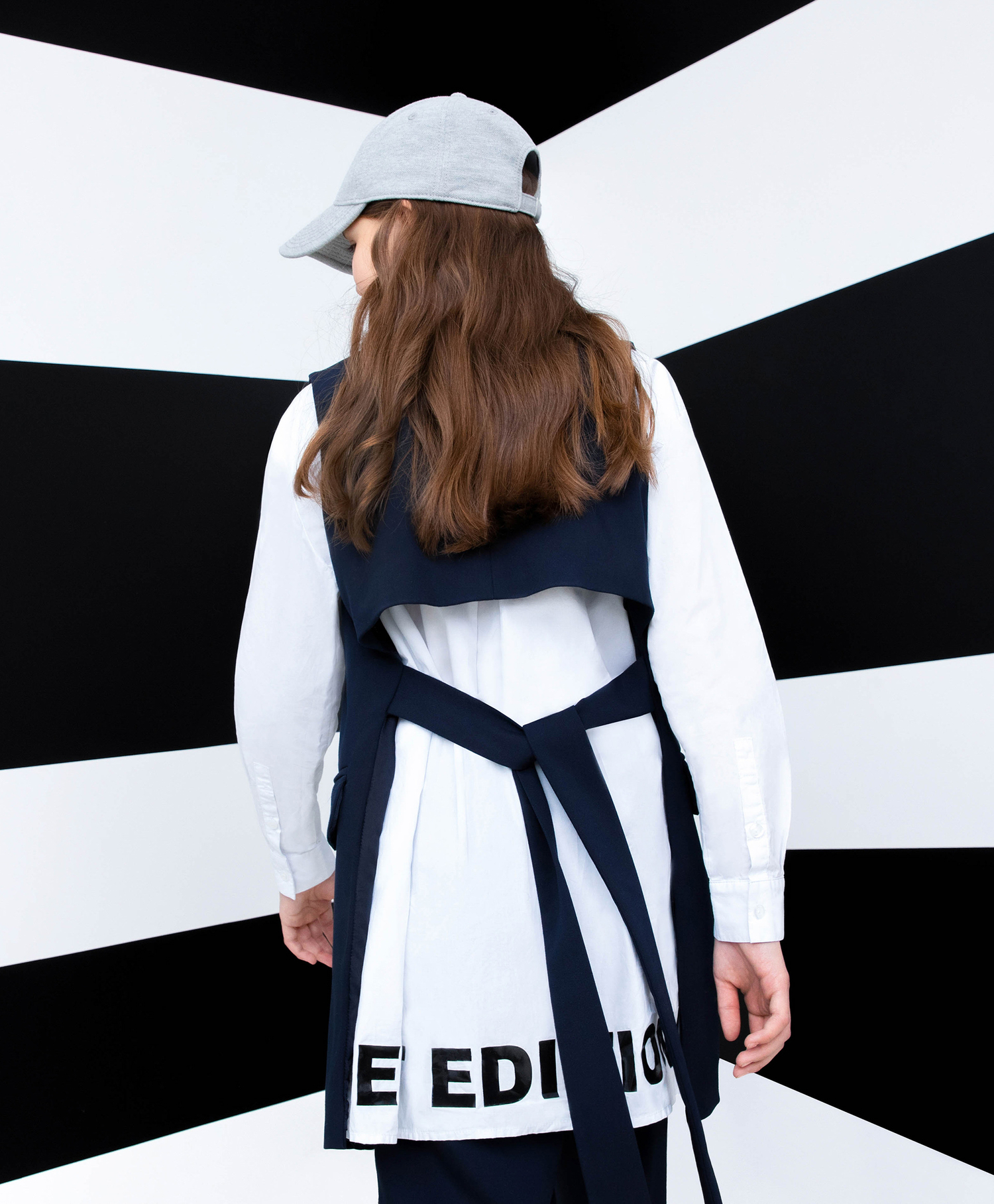 Синий текстильный жилет - яркая, острая, экстравагантная вещь, созданная в полном соответствии с деловым дресс-кодом. Интересный дизайн модели построен на резком контрасте длины переда и спинки. В сочетании с белой блузкой, водолазкой, рубашкой, жилет красиво контрастирует с ними по фактуре и цвету, акцентируя внимание на модных современных пропорциях в образе девочки. Необычное дизайнерское решение усилено поясом, который можно завязать на небрежный узел или бант. Строгий, лаконичный, элегантный, жилет подчеркнет яркую индивидуальность девочки и надолго закрепит за ней имидж иконы стиля.