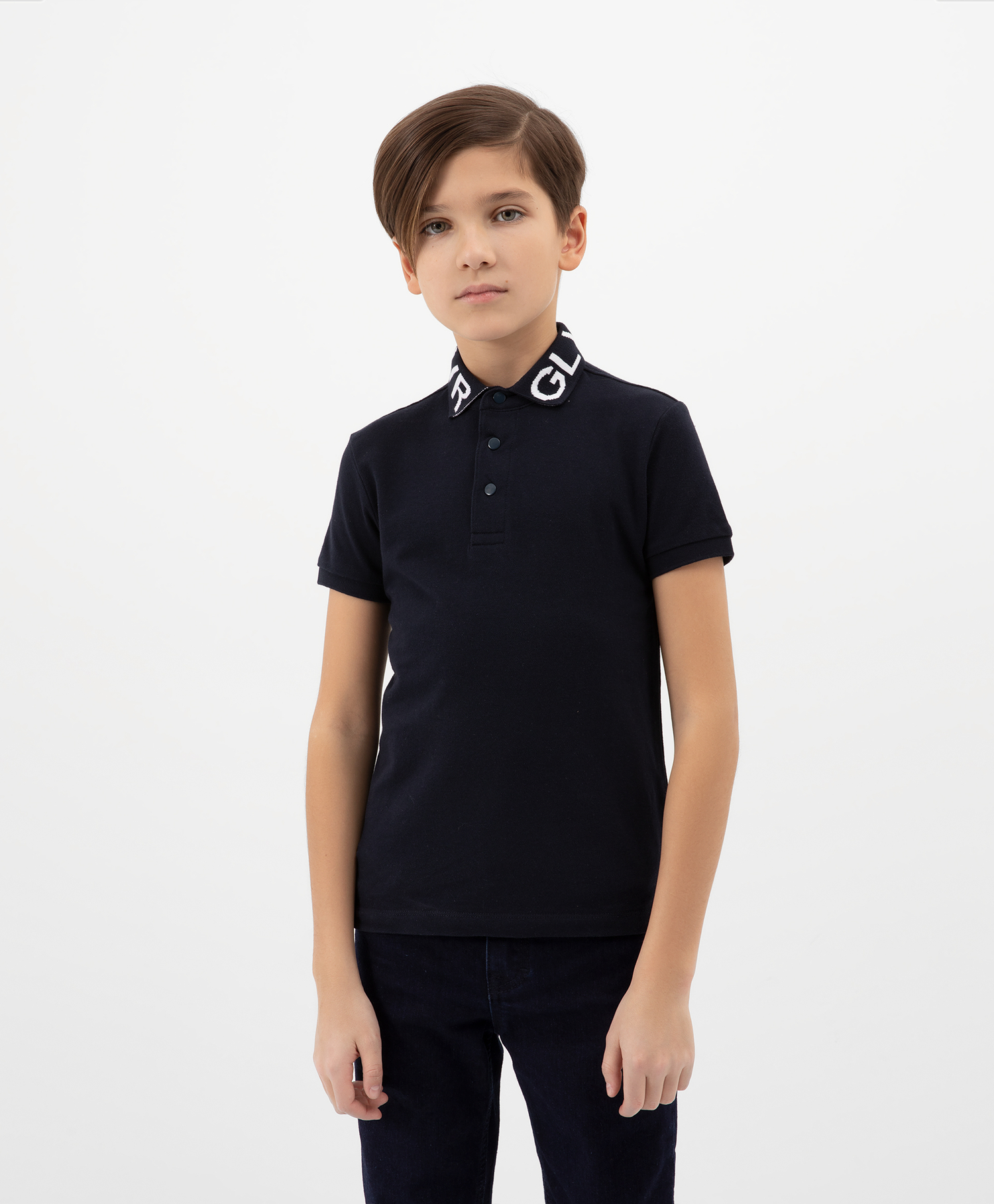 Если школьный дресс-код основан на лаконичности и комфорте, стильное синее поло из пике - прекрасный вариант. Аскетичный дизайн позволяет считать поло удачной альтернативой сорочке. Особенность модели - воротник с контрастными шрифтовыми элементами, выполненный в технике жаккардового переплетения.