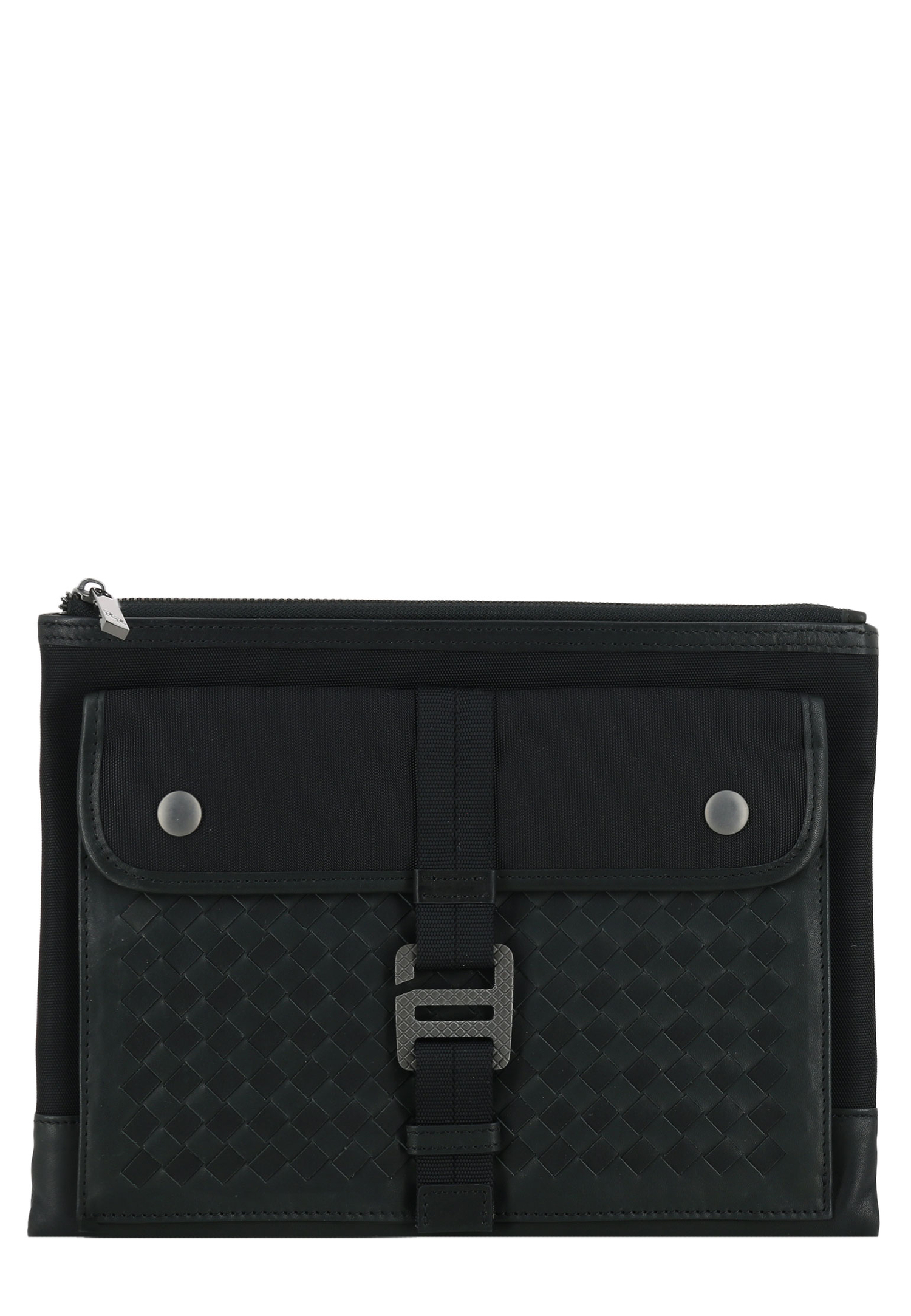 Для пошива угольно-черной прямоугольной борсетки мастера марки использовали плотный переработанный текстиль. Производство такого материала позволяет снизить потребление ресурсов и уменьшить выбросы углекислого газа. Накладной карман спереди дополнен вставками из натуральной кожи с замысловатым переплетением. Внутрь поместятся смартфон, паспорт и ключи. Базовый цвет гармонично дополнит образ в любой цветовой гамме.