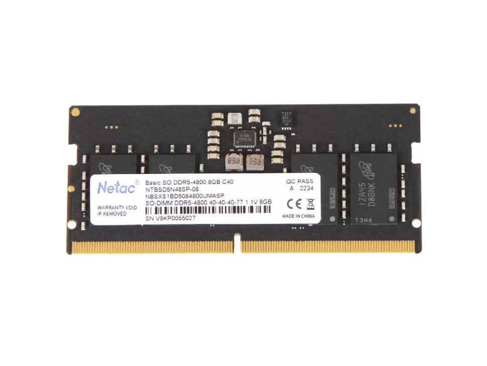 Модуль памяти SODIMM DDR5 8GB Netac Basic PC5-38400 4800MHz CL40 1.1V NTBSD5N48SP-08
