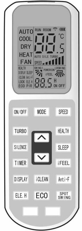 | Режим работы | авто, бесшумный, вентиляция, здоровье, обогрев, охлаждение, сон, турбо, эко |