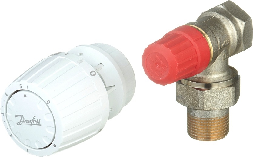 Запорный вентиль Danfoss 3/4 с термостатом, угловой, для двухтрубной системы 013G2235
