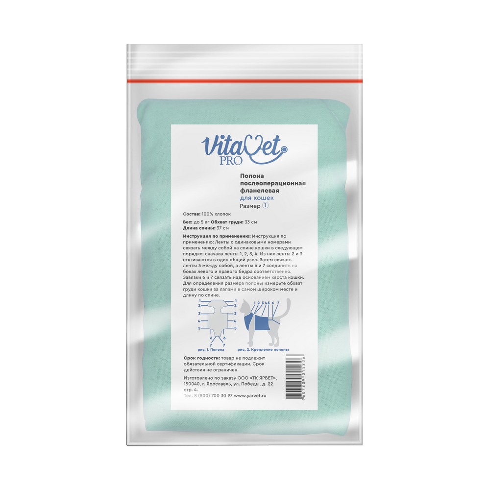 VitaVet Попона послеоперационная для кошек фланелевая №1 малая (размер: № 1)
