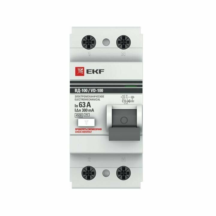 **УЗО EKF ВД-100 АС ** используется для установки в электрическом щитке жилого помещения. Защищает человека и животных от случайного поражения током. При сильном перепаде силы тока осуществляет отключение напряжения. Корпус изготовлен из прочного пластика. Имеется тумблер для включения устройства.