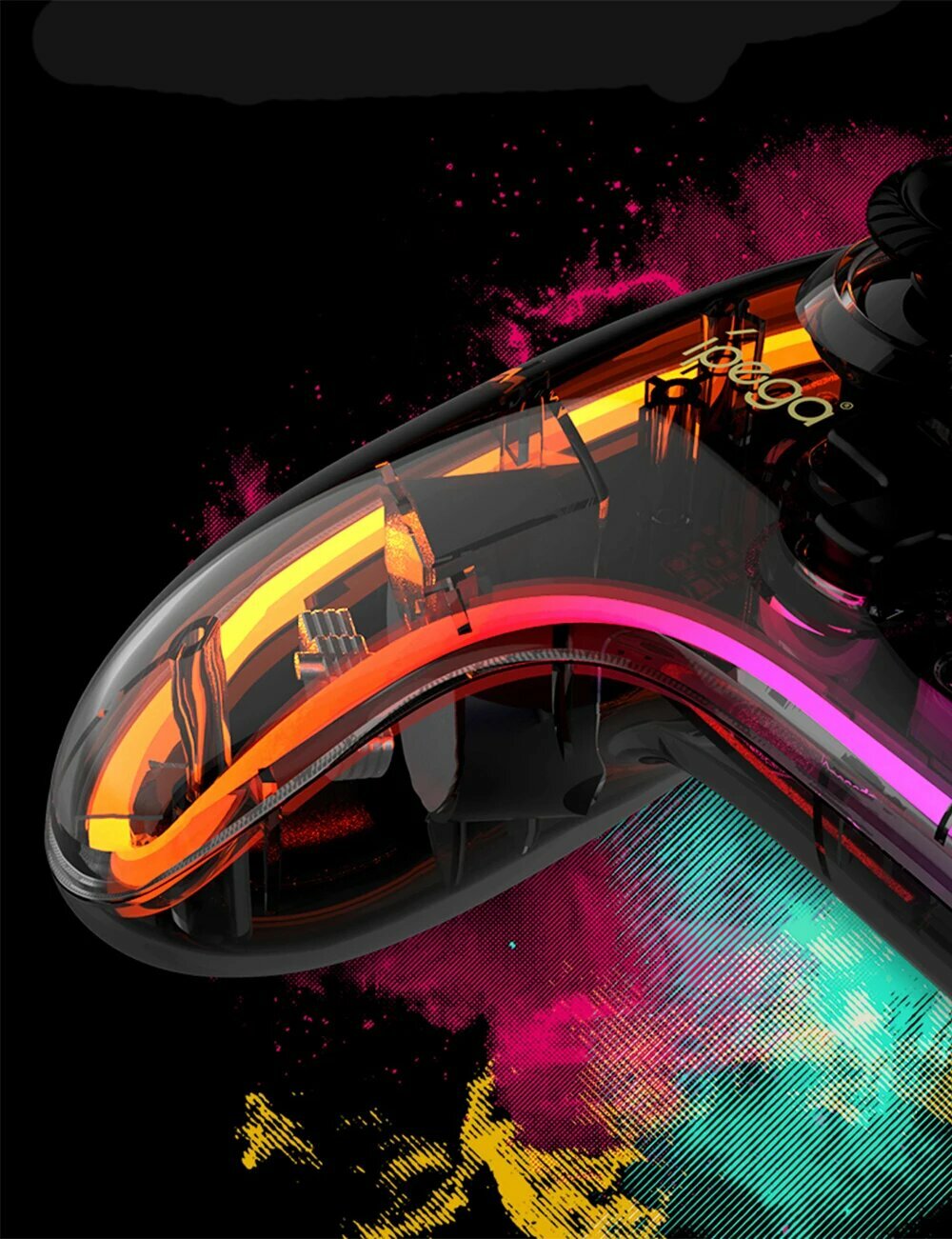 IPEGA – беспроводной геймпад с прозрачным дизайном и съемным держателем для устройств шириной от 55 до 85 мм. Оснащен двойным вибромотором и регулируемой RGB-подстветкой. Поддерживает платформы: Android (6.0 и выше), IOS (13.4-15.5 MFi Games), Nintendo Switch, PS3/4 и ПК (D-input, X-input). Время работы с полностью заряженным аккумулятором составляет до 15 часов.